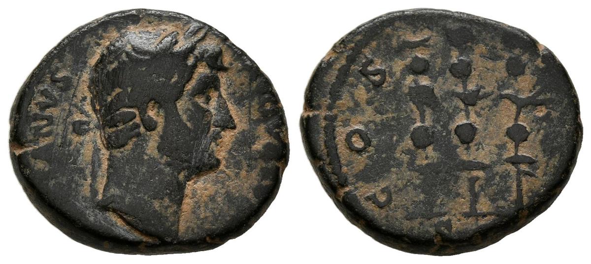 ADRIANO. Cuadrante. (Ae. 3,44g/17mm). 128-129 d.C. Roma. (RIC 976). Anv: Cabeza laureada de Adriano a derecha, alrededor leyenda: HADRIANVS AVGVSTVS P P. Rev: Aguila entre dos estandartes, entre S-C, alrededor leyenda: COS III. MBC.