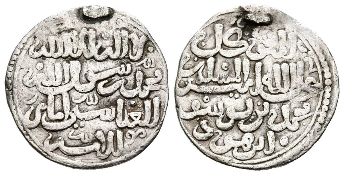 TAIFA ALMOHADES, Muhammad Al-Mutawakkil (Banu Hud, Reyes de Murcia). Dirham. (Ar. 1,52g/18mm). 625-635H. (Rodriguez Lorente 113; Vives 2140). MBC. Raro ejemplar. Restos de soldadura.