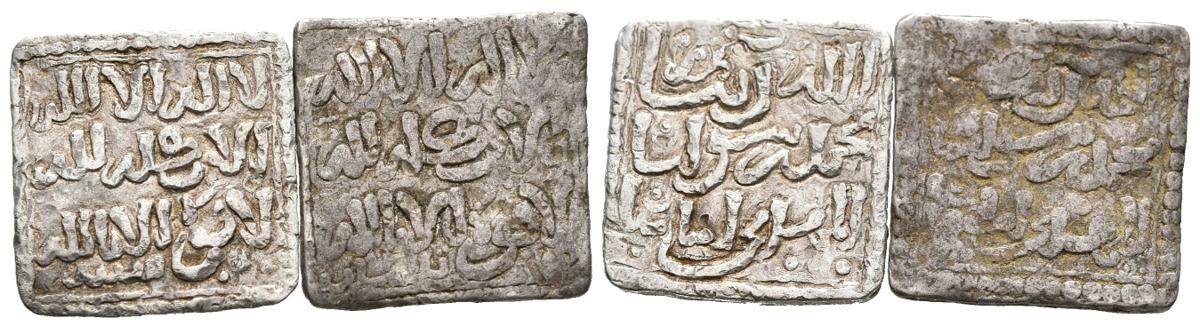ALMOHADES. Lote de dos dírhams anónimos. A nombre del Imam al- Mahdi. Cecas: Sabta (Ceuta) y Tilimsan (Tlemecén). (Vives 2105 y 2101). MBC.