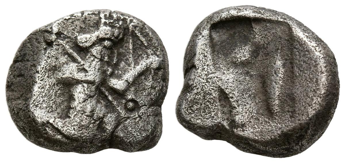 PERSIA, Reino Achaemenida. Siglos. (Ar. 5,37g/15mm). 485-420 a.C. Sardes. (BMC Arabia 22-25). Anv: Rey persa avanzando a derecha. Rev: Incuso. MBC.