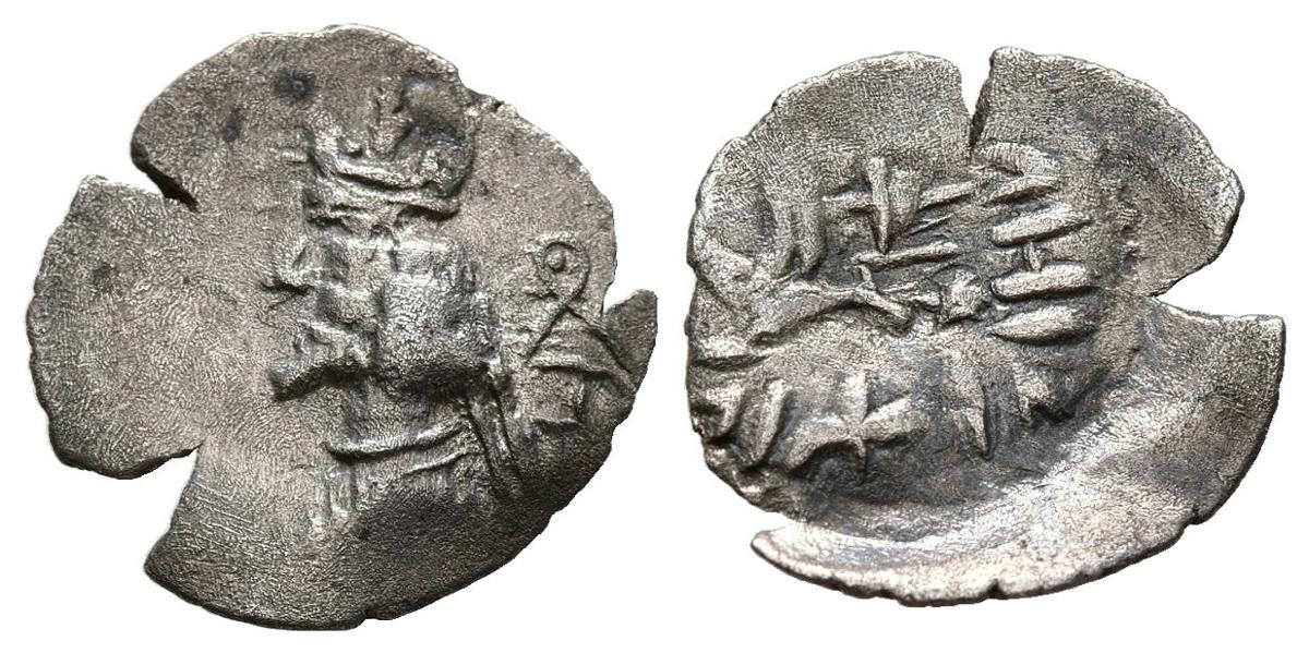 REYES DE PERSIA, Namopad. Obolo. (Ar. 0,54g/13mm). Siglo a.C. (Alram 602). Anv: Busto del rey a izquierda. Rev: Namopat estante a izquierda. MBC-.