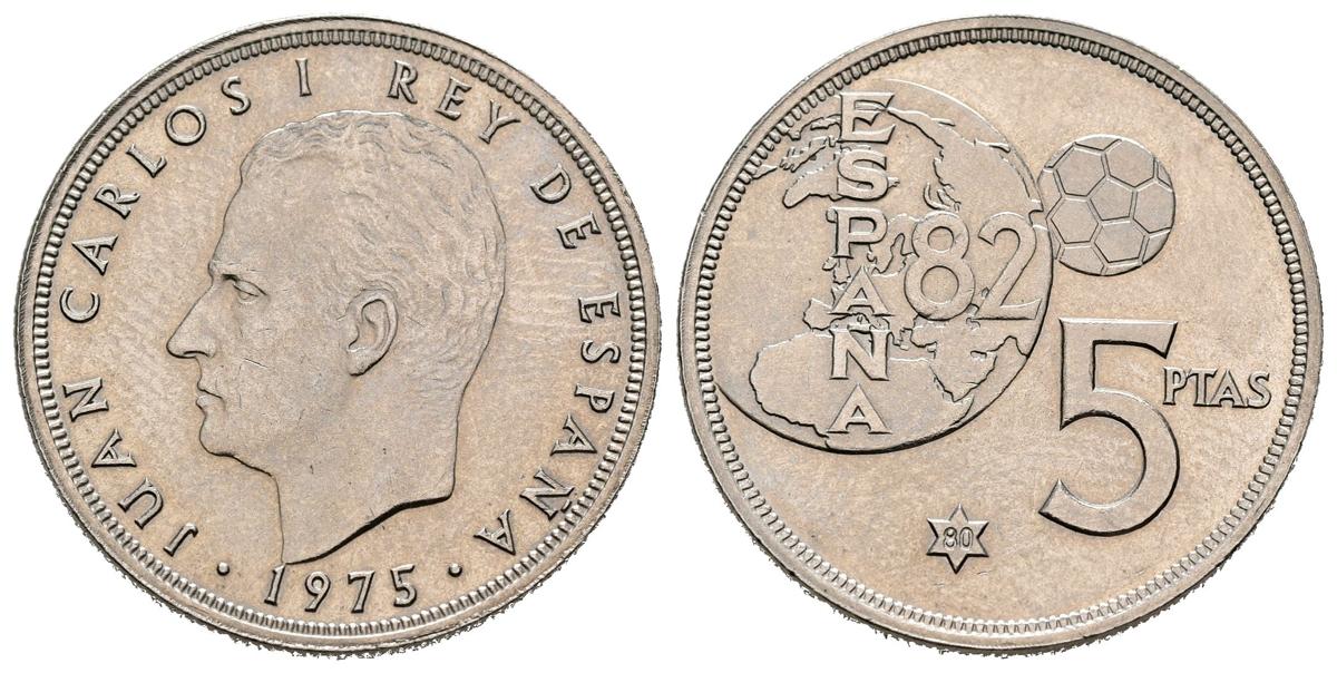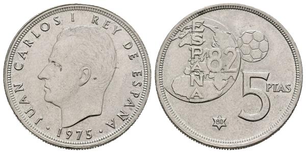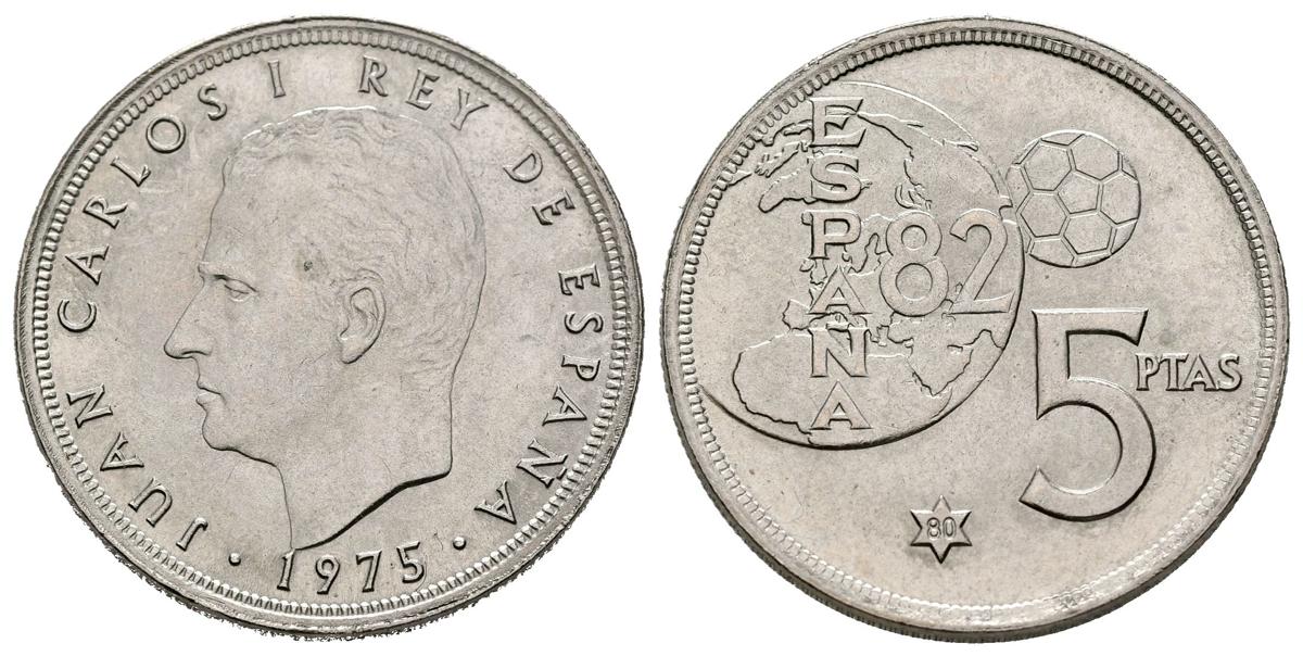 JUAN CARLOS I (1975-2014). 5 Pesetas. (CuNi. 5,76g/23mm). 1975 *80. (Cal-2019-40). Error del Mundial ´82. EBC. Ligeras rayitas.