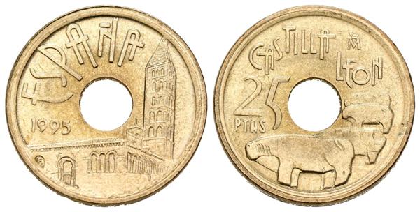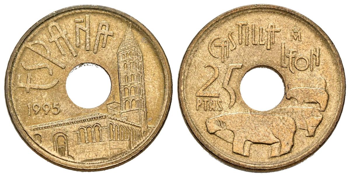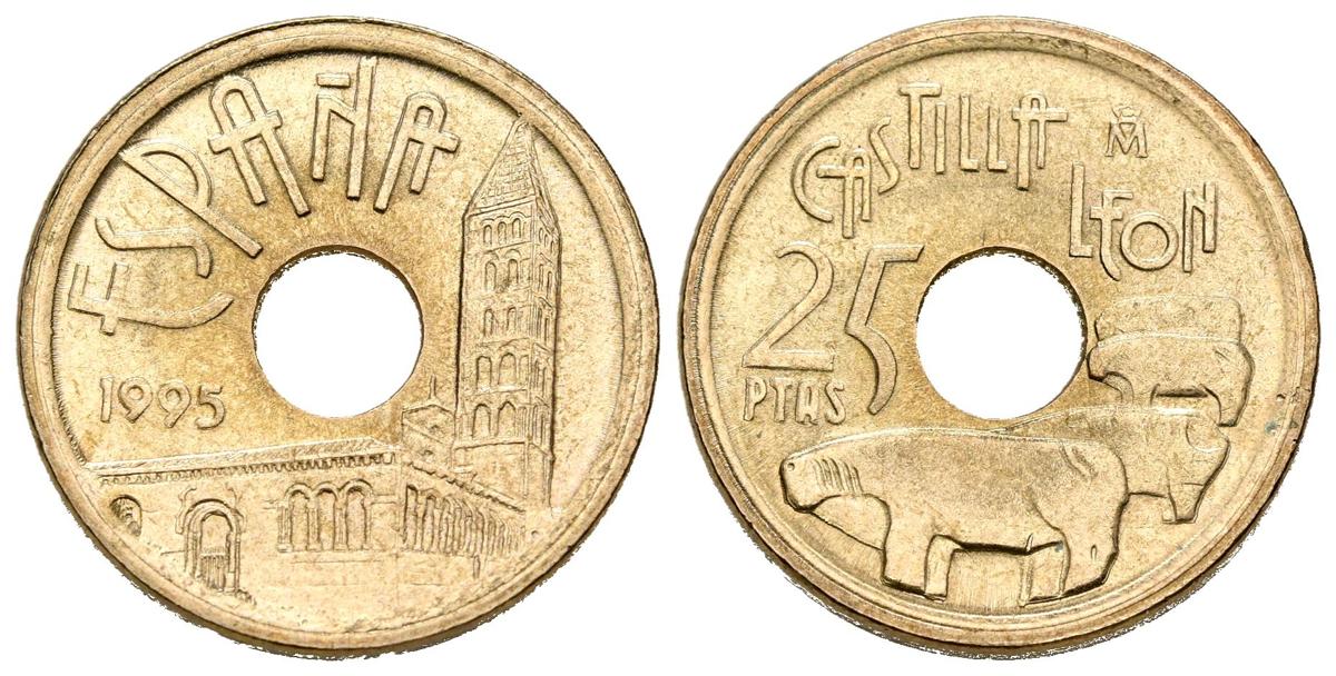 JUAN CARLOS I (1975-2014). 25 Pesetas (Cu-Ni. 4,22g/20mm). 1995. Madrid. (Cal-2019-93). SC. Error Castilla Léon (sin Y)