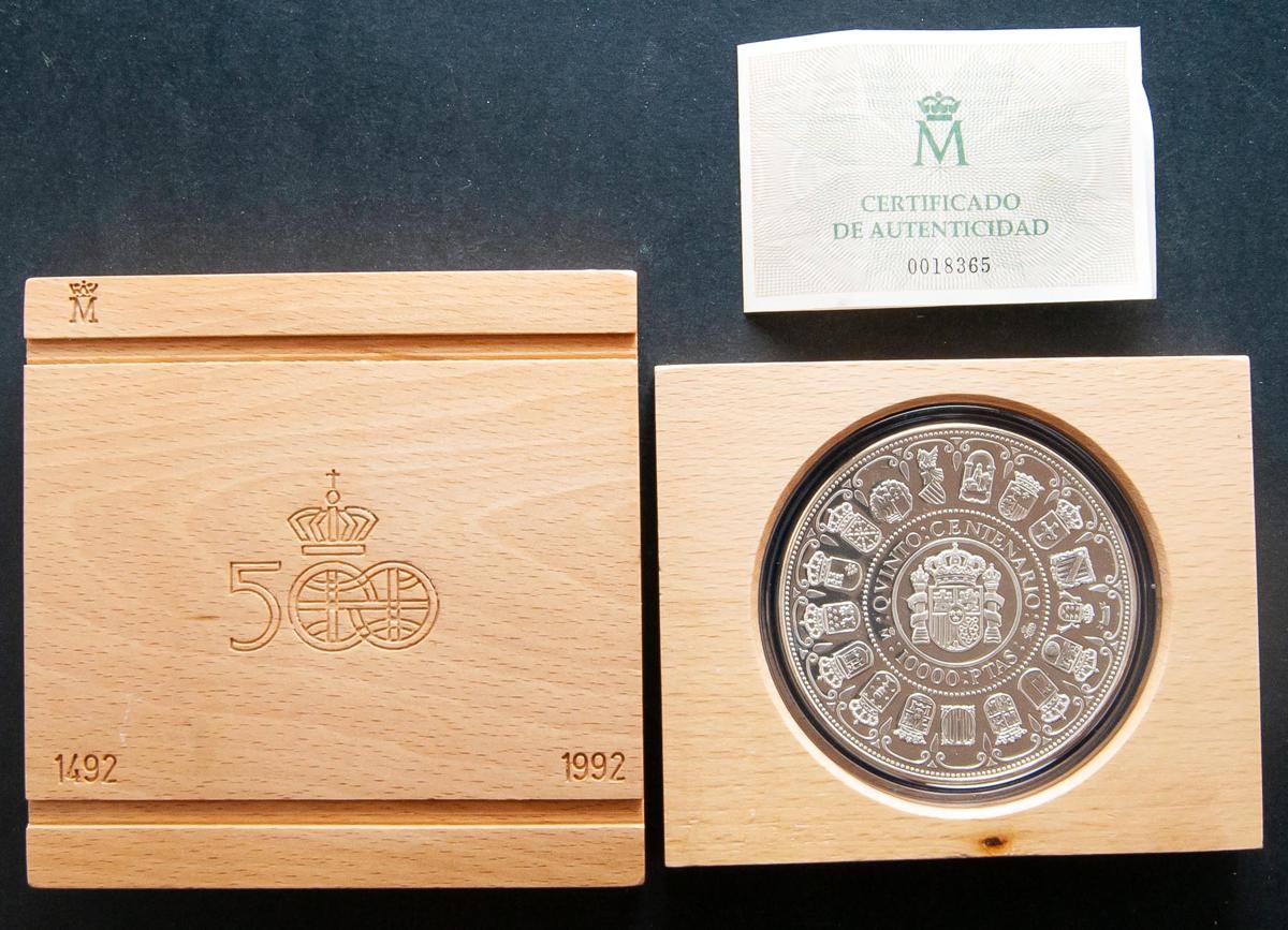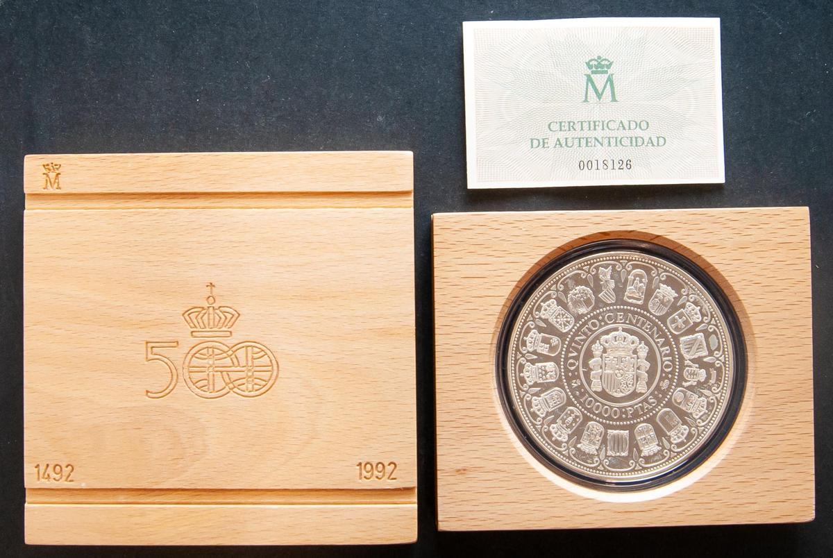 JUAN CARLOS I (1975-2014). 10.000 Pesetas. (Ar. 168,75g/73mm). Quinto Centenario. Serie IV. 1992. FNMT. FDC. Incluye estuche original y certificado de autenticidad.
