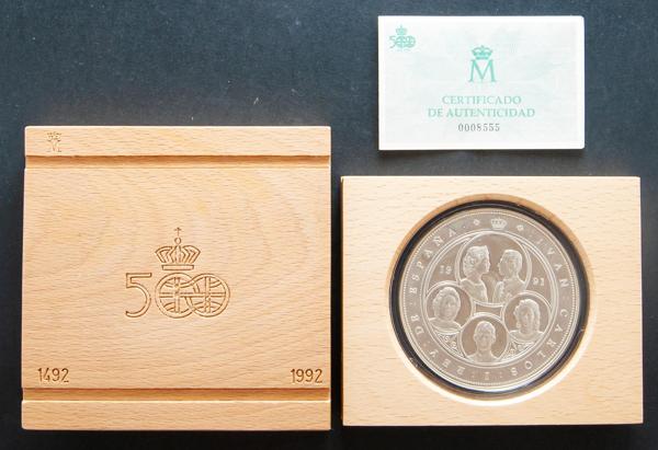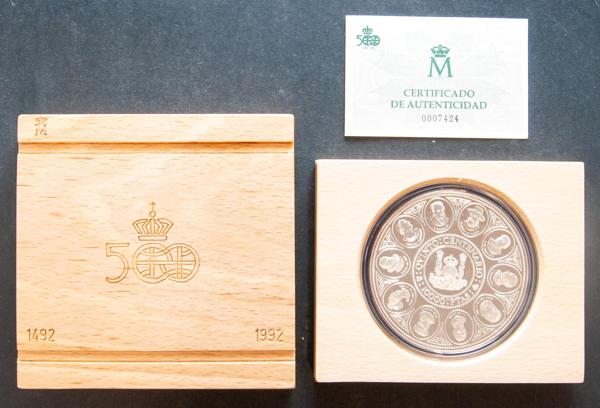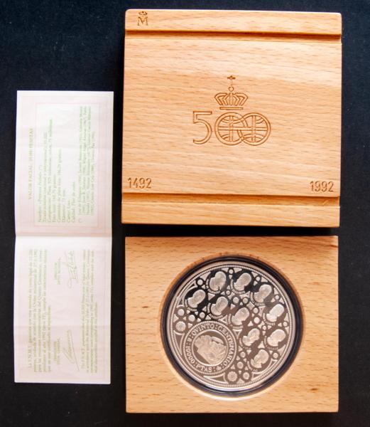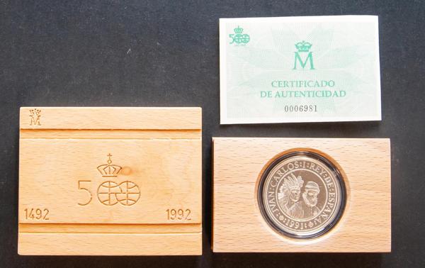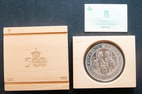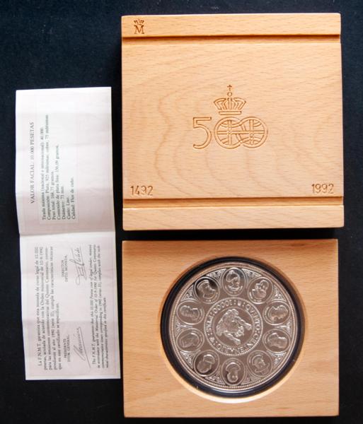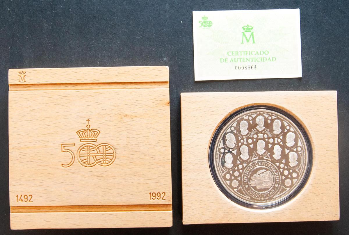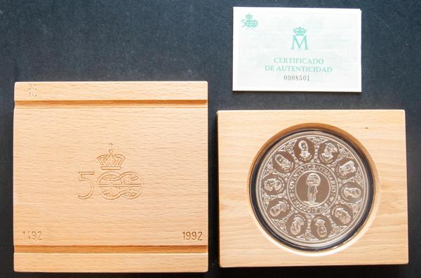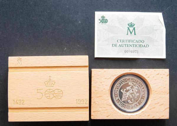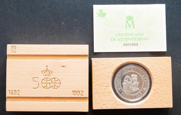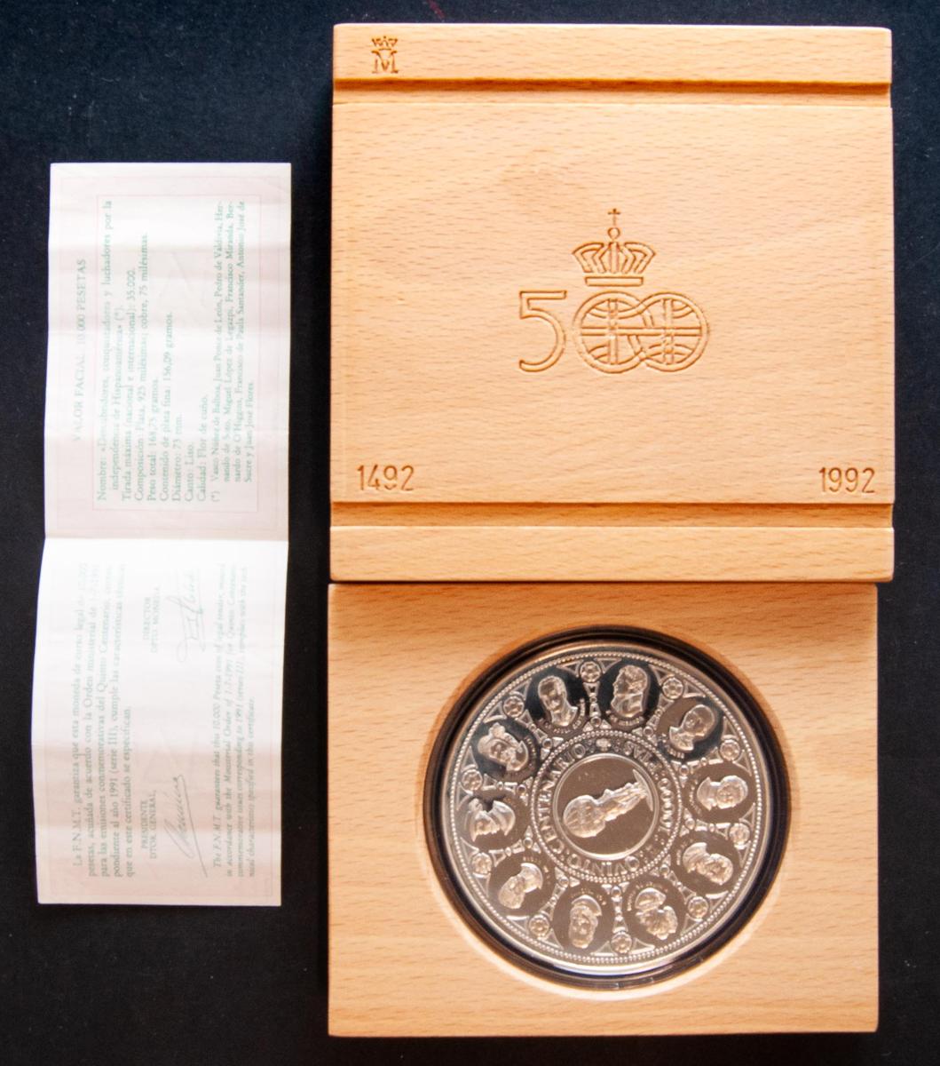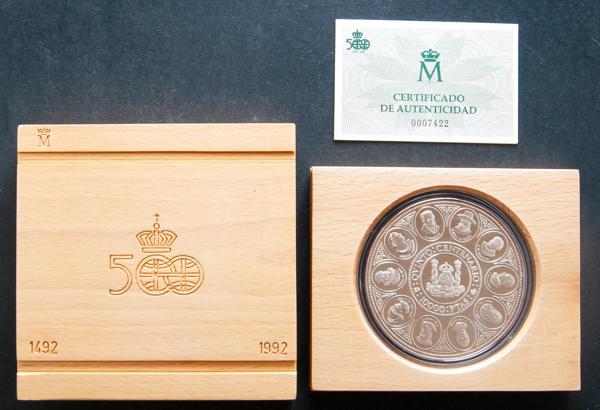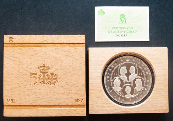 JUAN CARLOS I (1975-2014). 5000 Pesetas. (Ar. 54,00g/40mm). Serie Quinto Centenario. Serie IV. 1992. FNMT. PROOF. Presentada en estuche oficial y con certificado de autenticidad.