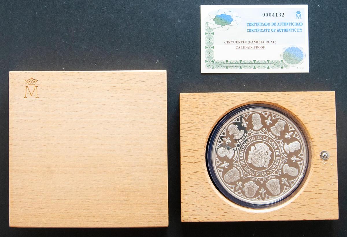 JUAN CARLOS I (1975-2014). 10.000 Pesetas (Ar. 168,75g/73mm). III Centenario de la Casa de Borbón. 1999. FNMT. PROOF. Incluye estuche original y certificado de autenticidad. Tirada de 8000 unidades.