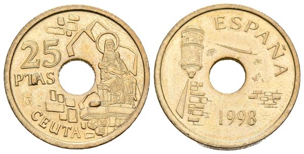 JUAN CARLOS I (1975-2016). 25 Pesetas. (CuNi. 4,32g/20mm). 1998. Ceuta. (Cal-2019-96). Exceso de metal en PTAS. EBC-.