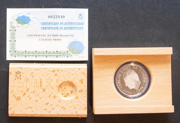 JUAN CARLOS I (1975-2014). 1000 Pesetas. (Ar. 13,50g/33mm). Mundial de Fútbol´98. 1998. FNMT. PROOF. Presentada en estuche oficial con certificado de autenticidad.