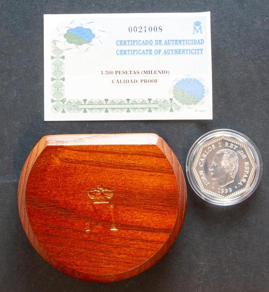 JUAN CARLOS I (1975-2014). 1500 Pesetas. (Ar. 20,00g/30mm). 1999. FNMT. Milenio. PROOF. Presentada en estuche oficial, cápsula y certificado de autenticidad.