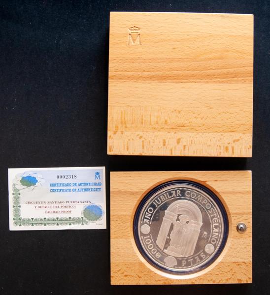 JUAN CARLOS I (1975-2014). 10.000 Pesetas (Ar. 168,75g/73mm). Año Jubilar Compostelano. 1999. FNMT. PROOF. Incluye estuche original y certificado de autenticidad. Tirada de 10.000 unidades.