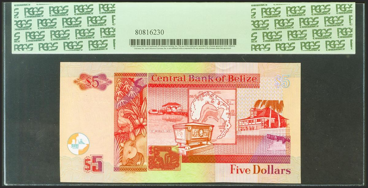 BELIZE. 5 Dollars. 1 September 2011. (Pick: 67e). PCGS66PPQ.