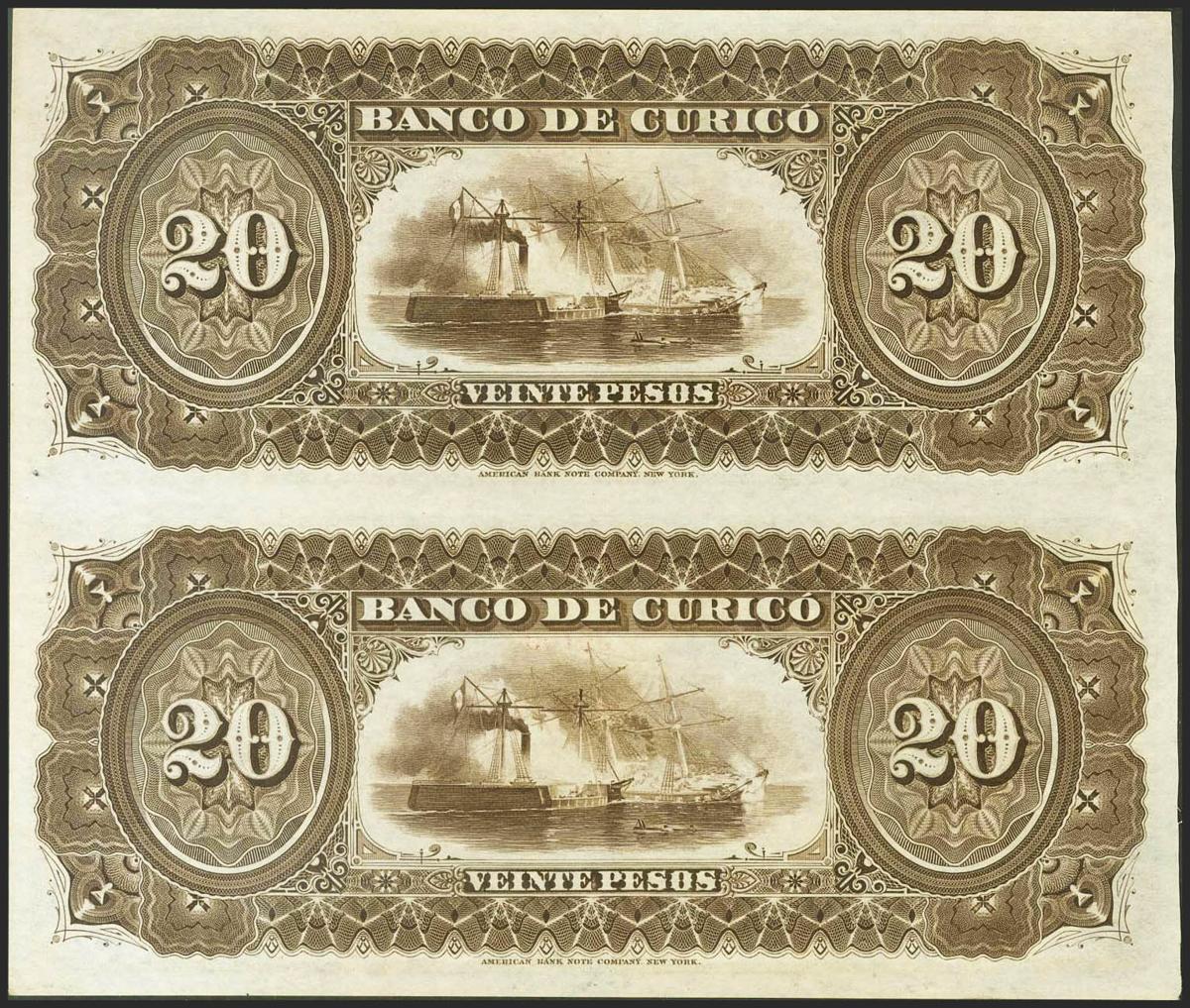 CHILE. 20 Pesos. (1882ca). Unseparated and pair correlative. Remainder. (Pick: S220r). Uncirculated.