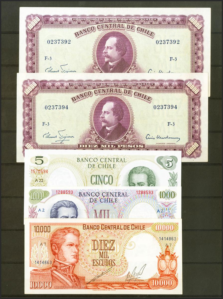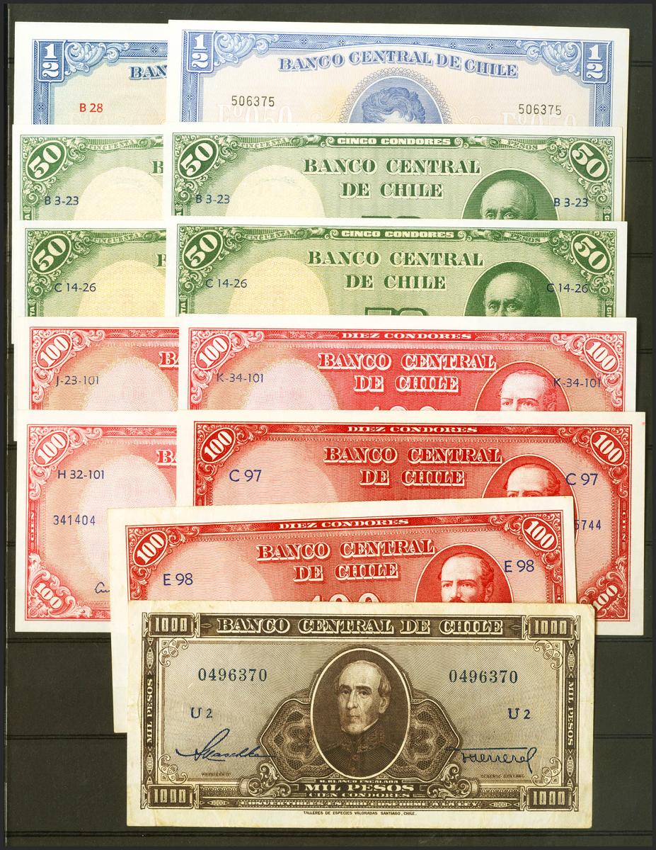 Set of 31 banknotes of the Bank of Chile, different issues, all of them uncirculated, several of them with correlative numbering or close to each other. TO EXAMINE.