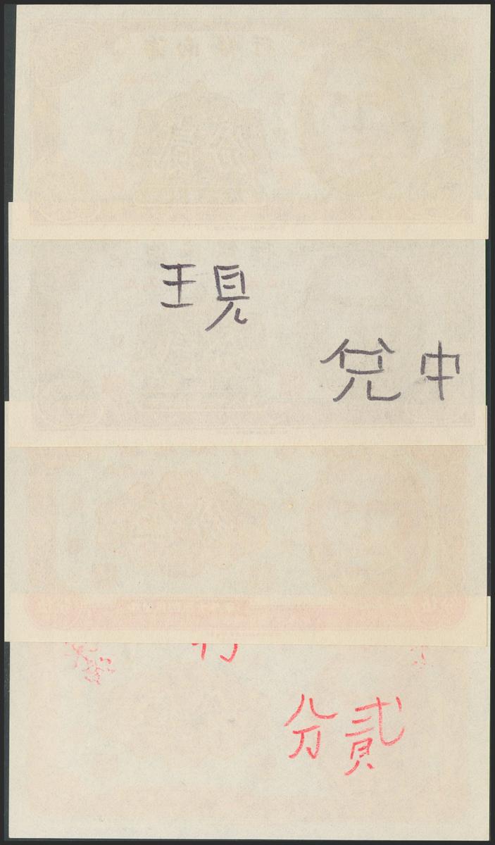 CHINA (REPUBLIC). Set of 4 banknotes: 1 Cent, 1 Cent, 2 Cents, 2 Cents. 1949. Hainan Bank. (Pick: S1451, S1451, S1452, S1452). One of each with Chinese writing on the back. Uncirculated.
