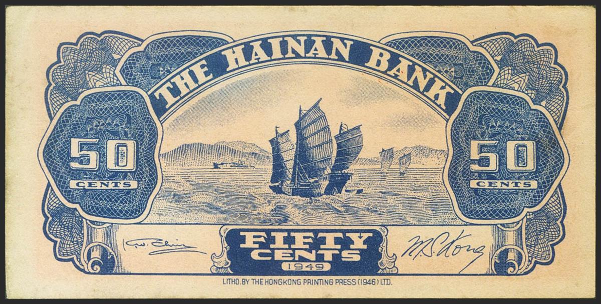 CHINA (REPUBLIC). 50 Cent. 1949. Hainan Bank. (Pick: S1456). Stain on obverse. About Uncirculated.