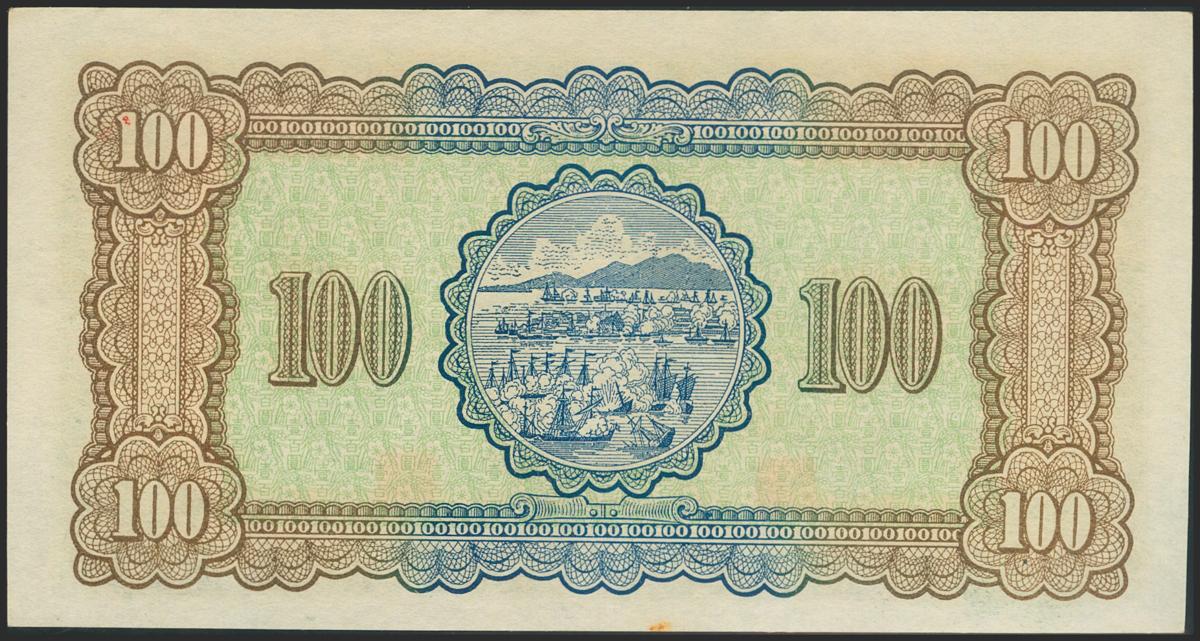 CHINA (TAIWAN). 100 Yuan. 1947. Bank of Taiwan. (Pick: 1941). Small stain on lower margin. Uncirculated.