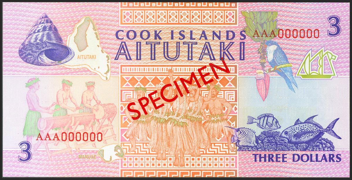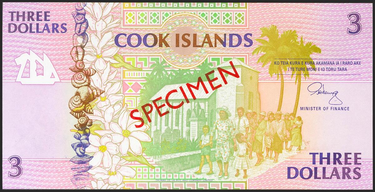 COOK ISLAND. 3 Dollars. 1992. SPECIMEN. (Pick: 7s). Extremely Fine.