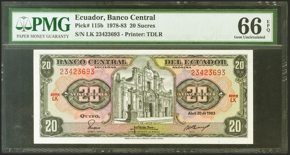 ECUADOR. 20 Sucres. 20 April 1983. Serie LK. (Pick: 115a). PMG66EPQ.