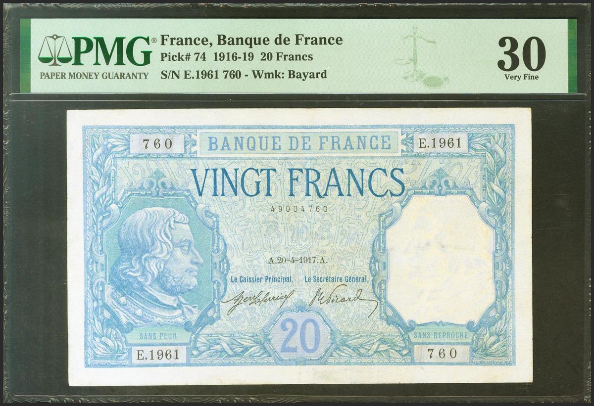 FRANCE. 20 Francs. 1916. (Pick: 74). Minor repairs. PMG30.