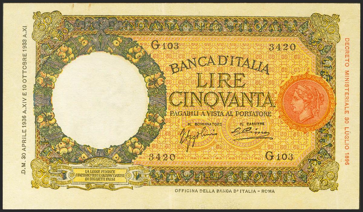 ITALY. 50 Lire. 1936. (Pick: 54). Extremely fine.