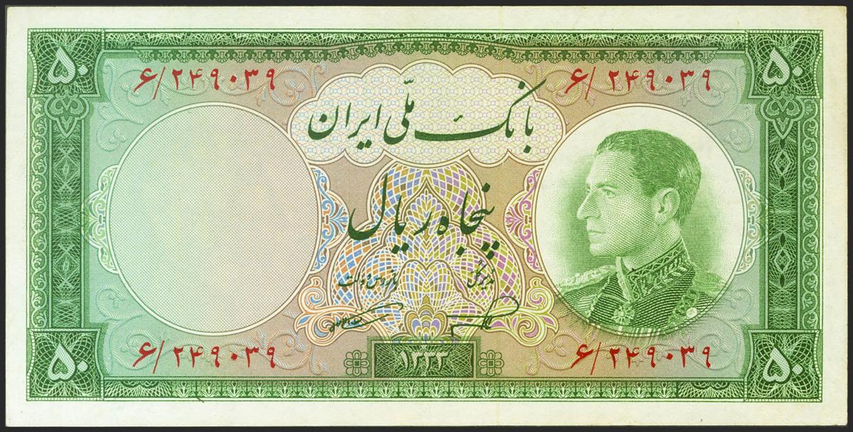IRAN. 50 Rials. 1954. (Pick: 66). About uncirculated.