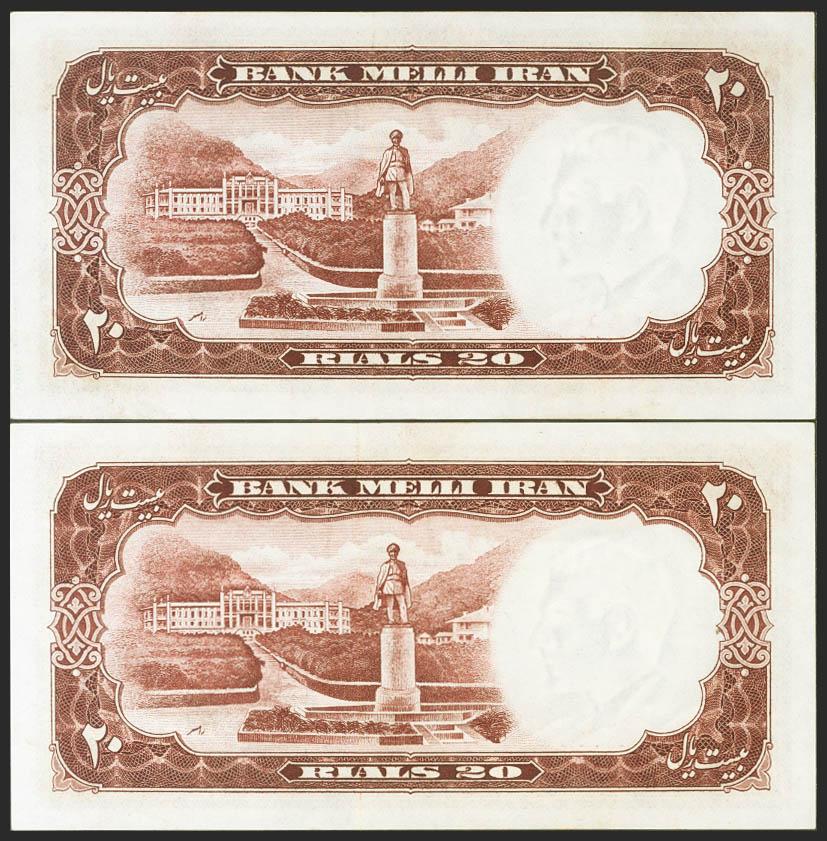 IRAN. 20 Rials. 1958. Correlative pair. (Pick: 69). About uncirculated.