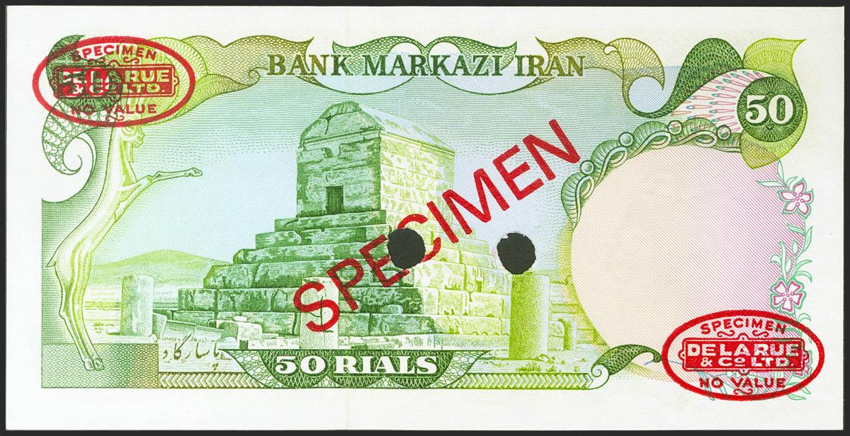 IRAN. 50 Rials. 1974. SPECIMEN. (Pick: 101s). Uncirculated.