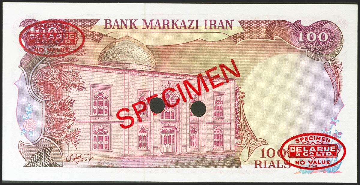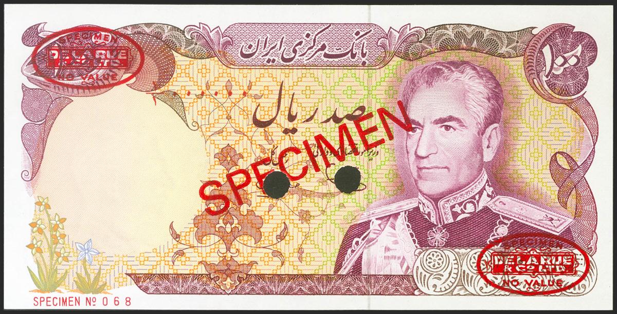IRAN. 100 Rials. 1974. SPECIMEN. (Pick: 102s). Uncirculated.
