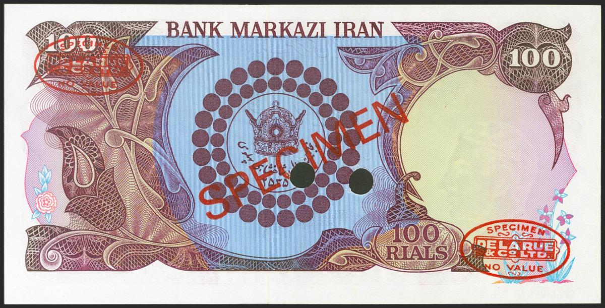IRAN. 100 Rials. 1974. SPECIMEN. (Pick: 108s). Uncirculated.