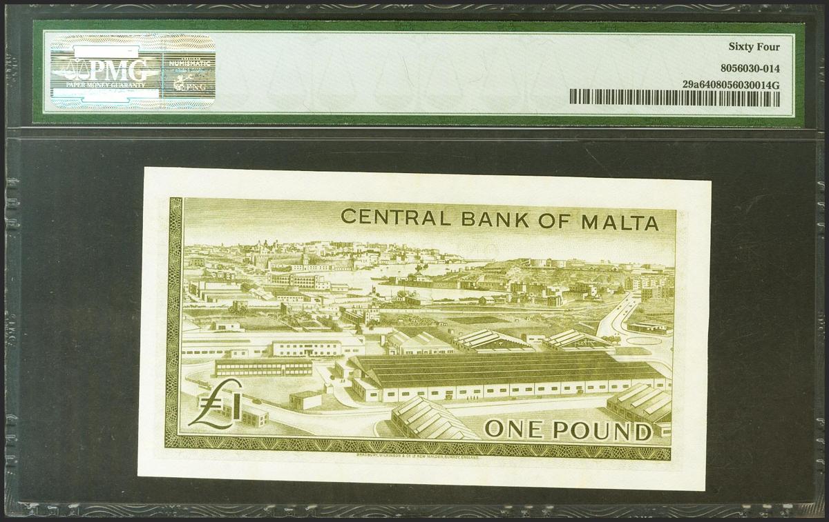 MALTA. 1 Pound. 1969. Low numbering. (Pick: 29a). PMG64.