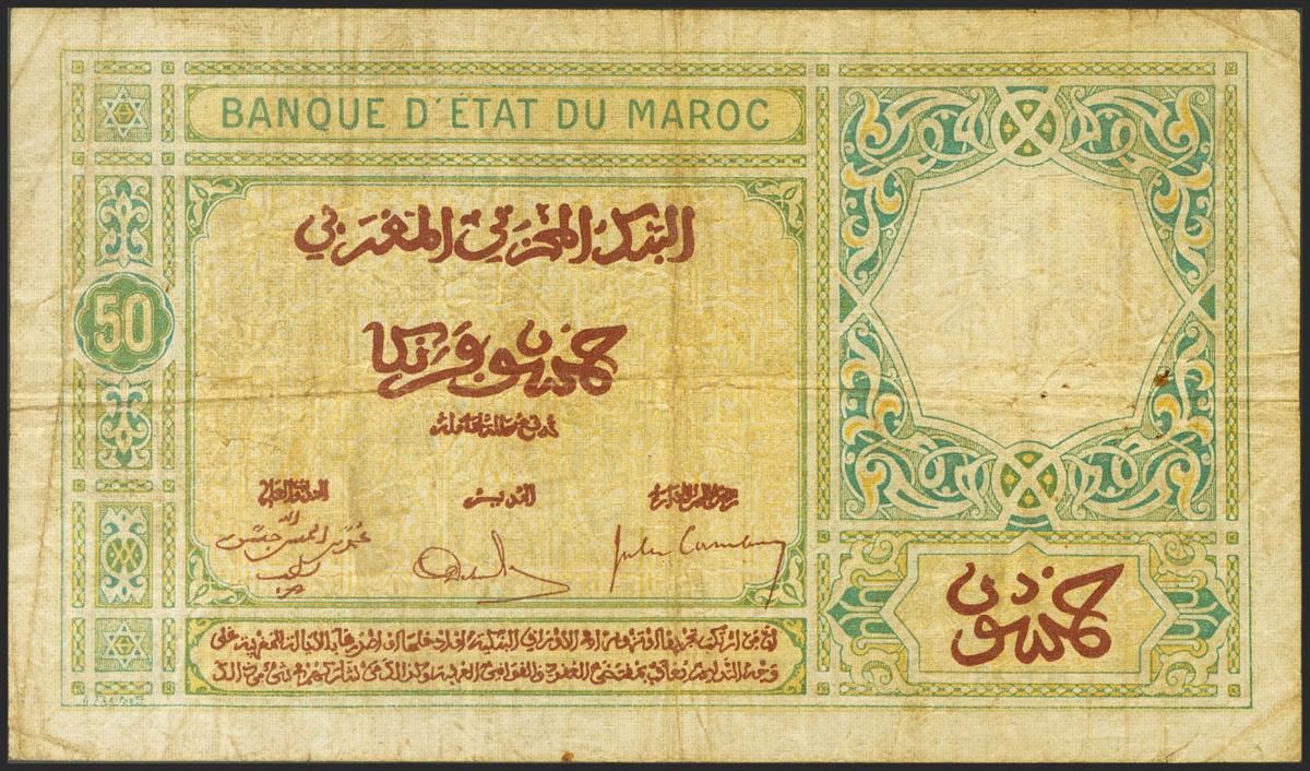 MOROCCO. 50 Francs. 17 November 1932. (Pick: 13). Very rare and staples holes. Good.