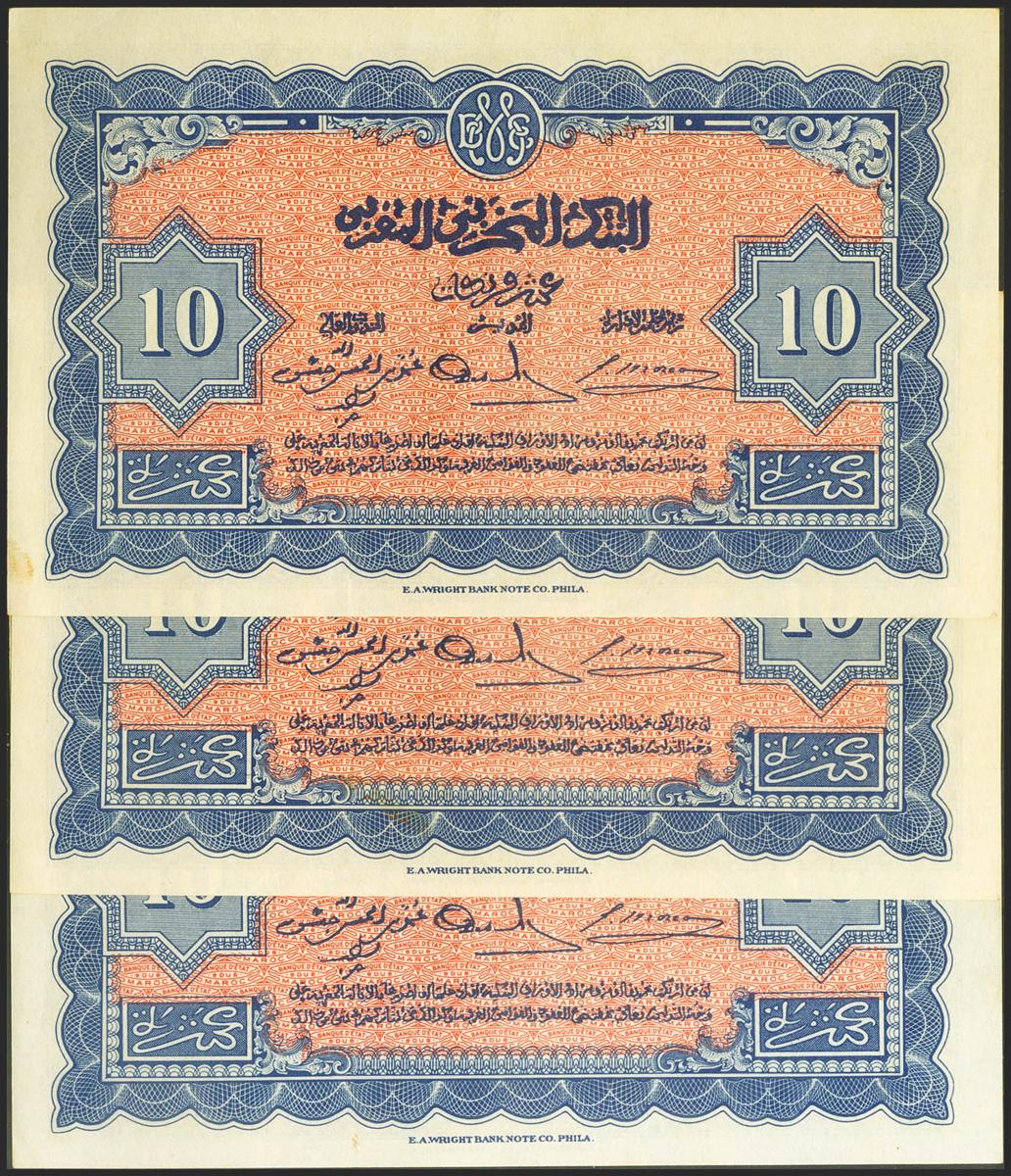 MOROCCO. Group of 3 correlative banknotes of 10 Francs. 1 May 1943. (Pick: 25a). Spots rusts. Extremely Fine-.