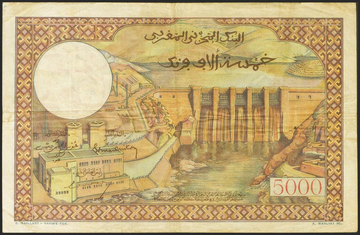 MOROCCO. 5000 Francs. 23 July 1953. (Pick: 51). Rare. Fine-.