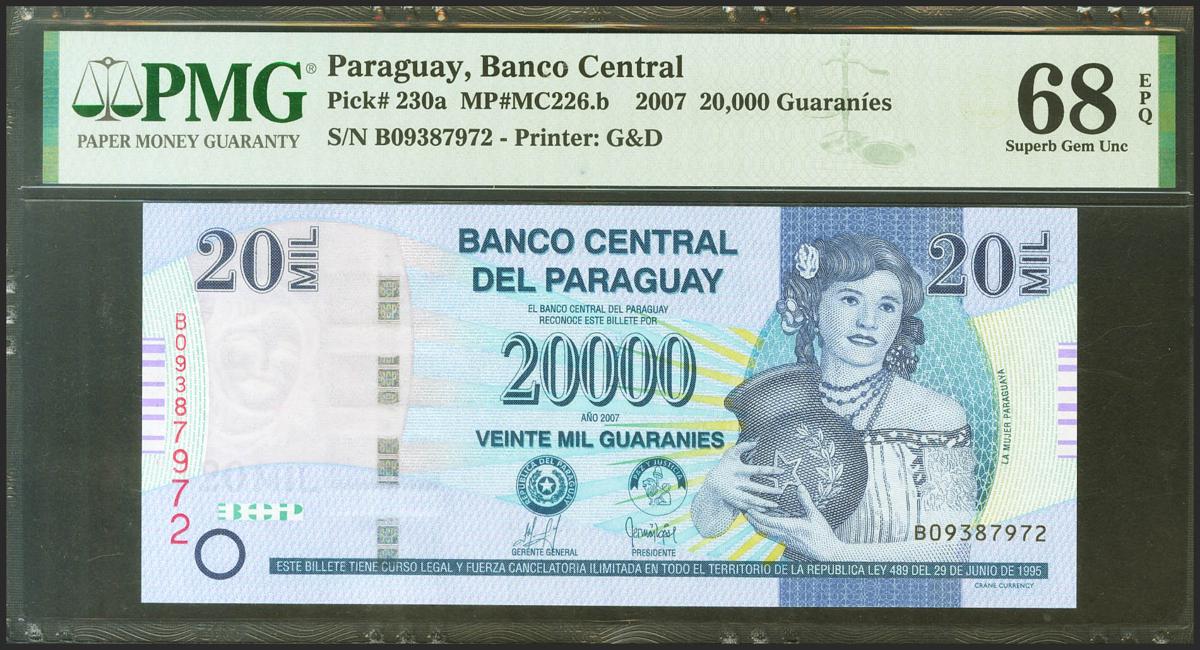 PARAGUAY. 20000 Guaranies. 2007. (Pick: 230a). PMG68EPQ.