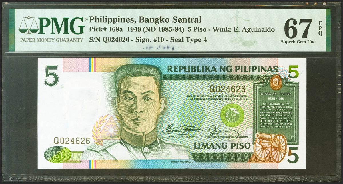 PHILIPPINES. 5 Piso. 1949. (Pick: 168a). PMG67EPQ.