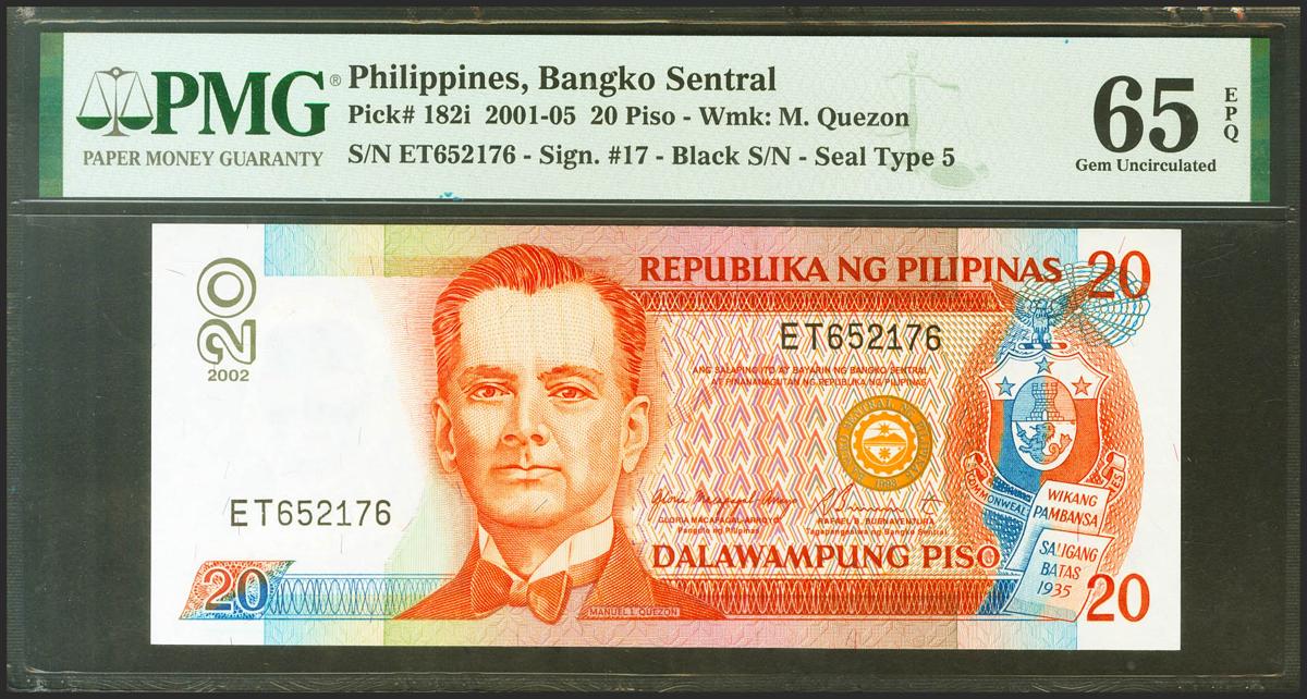 PHILIPPINES. 20 Piso. 2001. (Pick: 182i). PMG65EPQ.
