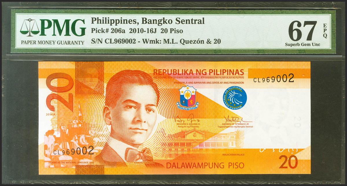 PHILIPPINES. 20 Piso. 2010. (Pick: 206a). PMG67EPQ.