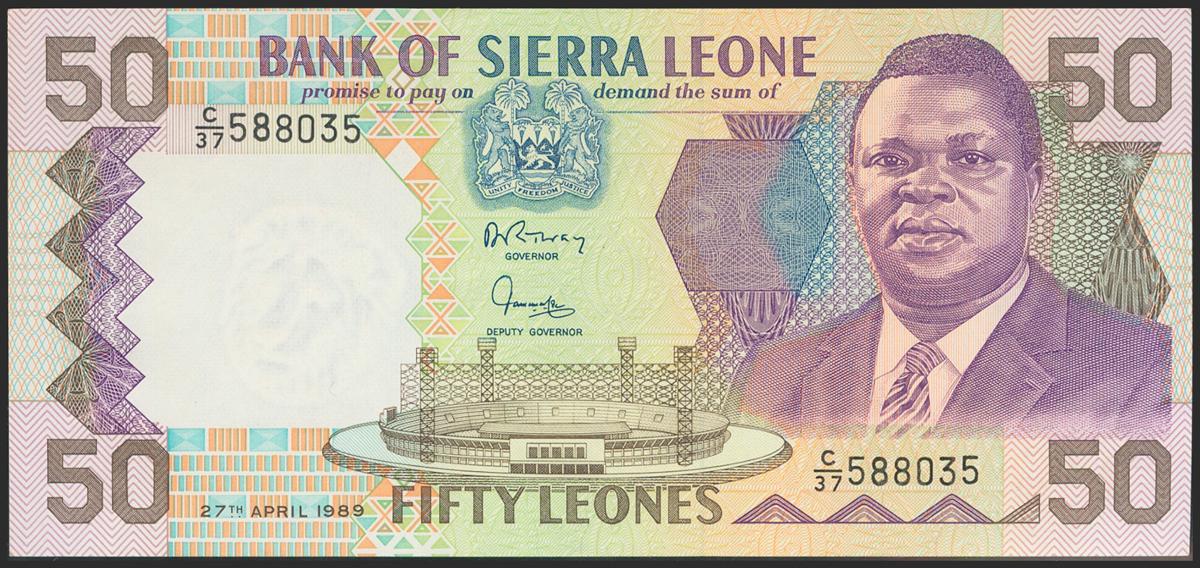 SIERRA LEONE. 50 Leone. 1989. (Pick: 17b). About Uncirculated.