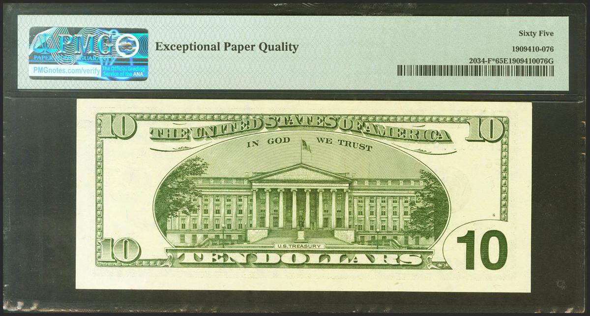 USA. 10 Dollars. Federal Reserve Note. Serial number BF-*. 1999. (Friedberg: 2034-F*, Pick: 506). Uncirculated. PMG65EPQ