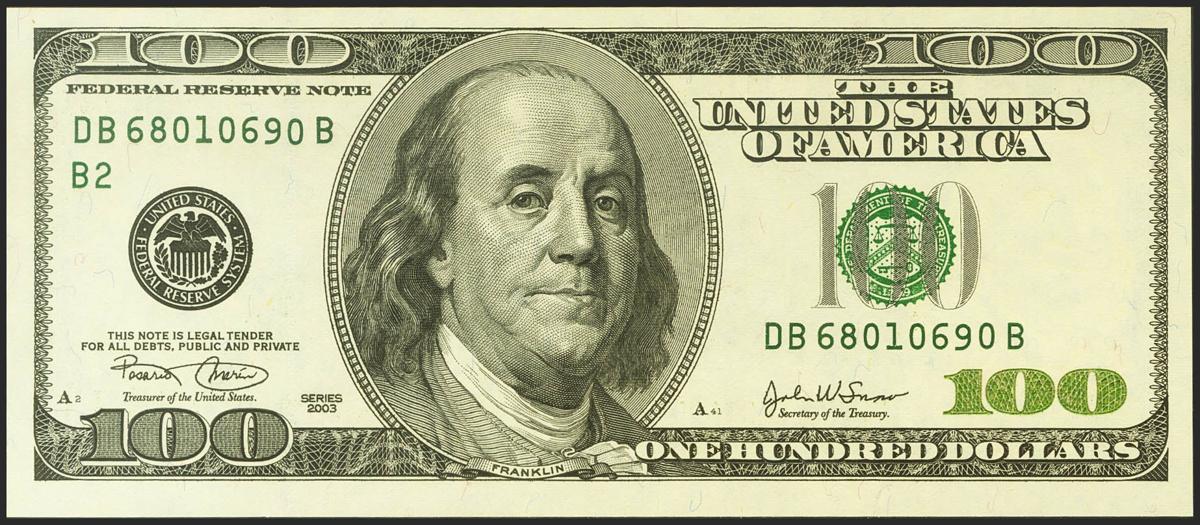 USA. 100 Dollars. Federal Reserve Note. Serial number DB-B. 2003. (Friedberg: 2178B, Pick: 519a). Uncirculated.