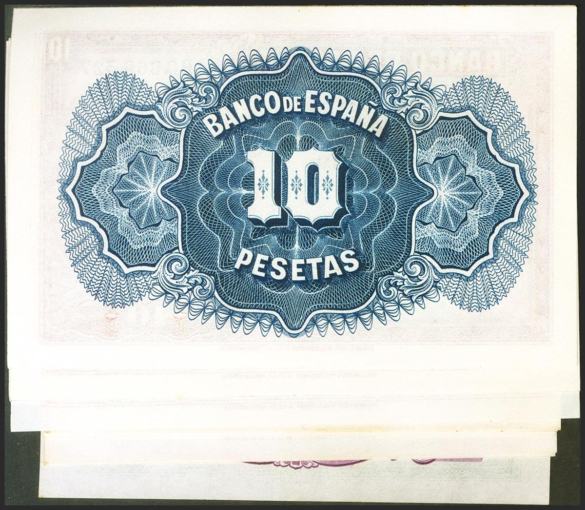 Conjunto de 10 billetes correlativos de 5 Pesetas y 10 Pesetas. Certificado de Plata, emitidos en 1935 y ambos con las series B (Edifil 2021: 2021: 363a, 364a), conservando todo su apresto original. SC/SC-.