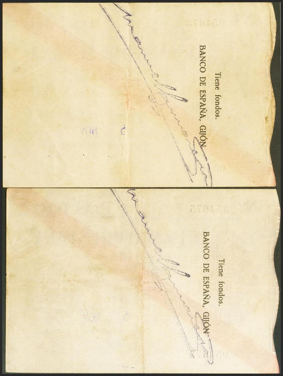 100 Pesetas. 5 de Noviembre de 1936. Sucursal de Gijón. Pareja correlativa. Sin serie. (Edifil 2021: 384). Rarísima pareja, especialmente en esta excepcional calidad para este billete, que siempre está en calidades bajas. EBC.