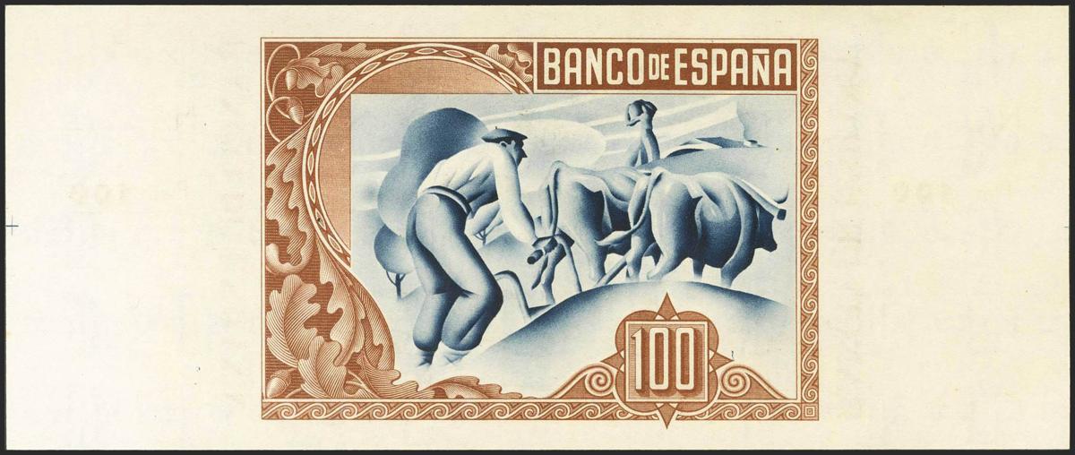 100 Pesetas. 1 de Enero de 1937. Sucursal de Bilbao, antefirma Caja de Ahorros y Monte de Piedad Municipal de Bilbao. Sin serie y sin numeración, con ambas matrices. (Edifil 2017: 390c). Apresto original. SC.
