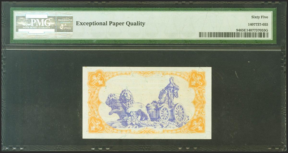 1 Peseta. 1937. Ministerio de Hacienda. Serie B. (Edifil 2021: 392, Pick: 94). Apresto original. SC. Encapsulado PMG65EPQ.