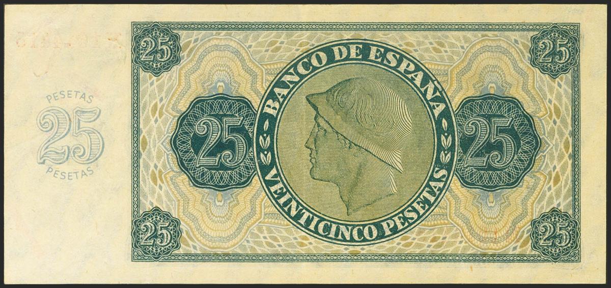 25 Pesetas. 21 de Noviembre de 1936. Serie N. (Edifil 2021: 419a). Conserva gran parte de su apresto orginal. EBC+.