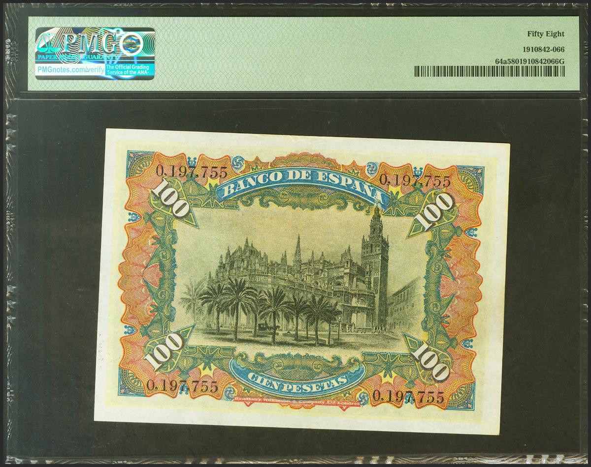 100 Pesetas. 15 de Julio de 1907. Sin serie. (Edifil 2021: 320, Pick: 64a). Inusual en esta calidad. EBC++. Encapsulado PMG58.