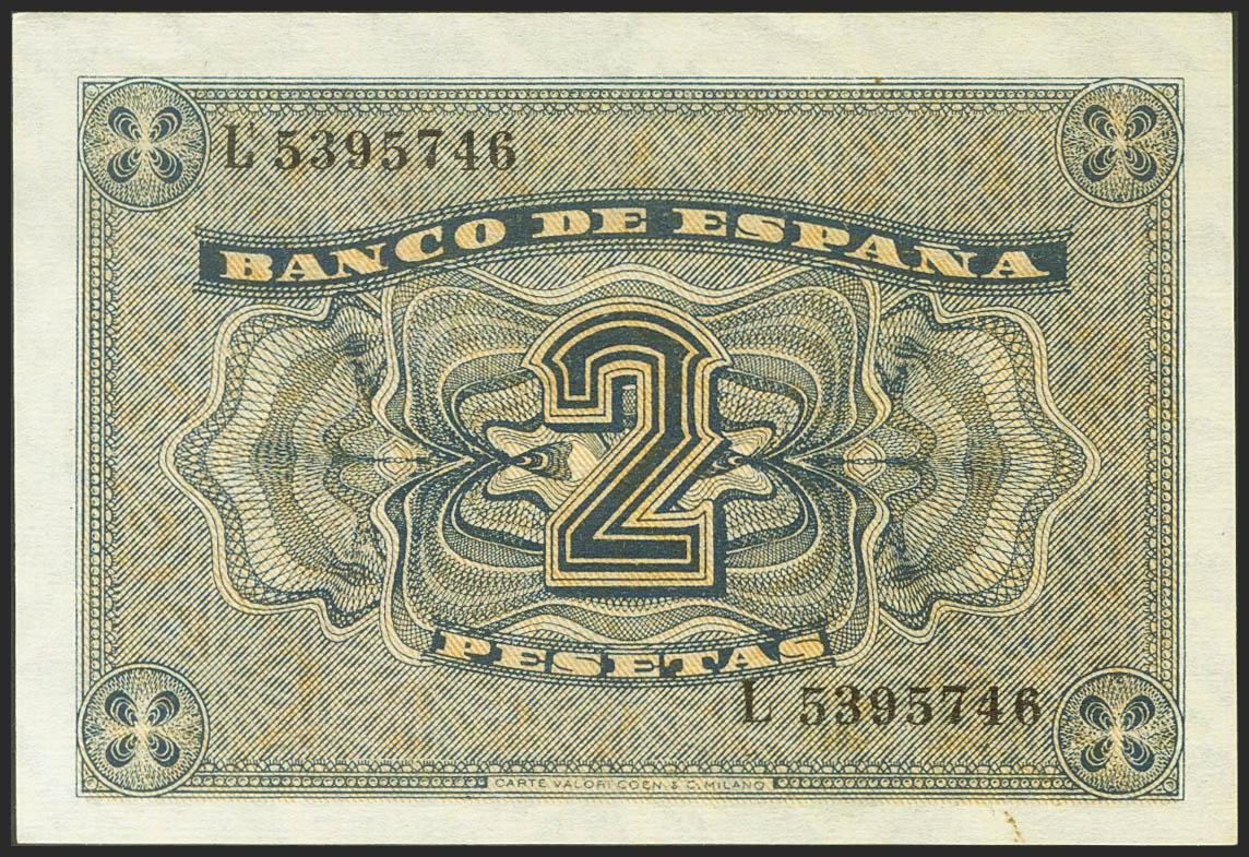 2 Pesetas. 30 de Abril de 1938. Serie L. (Edifil 2021: 429a). Apresto original. SC-.