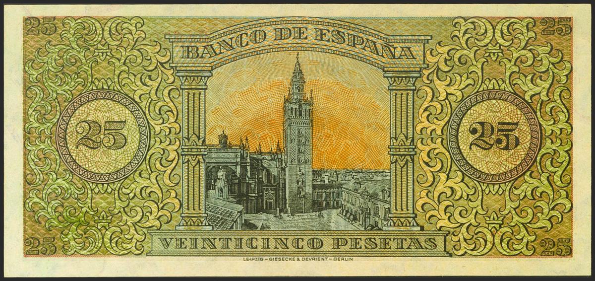 25 Pesetas. 20 de Mayo de 1938. Serie B. (Edifil 2021: 430a). Conserva parte del apresto original. EBC+.