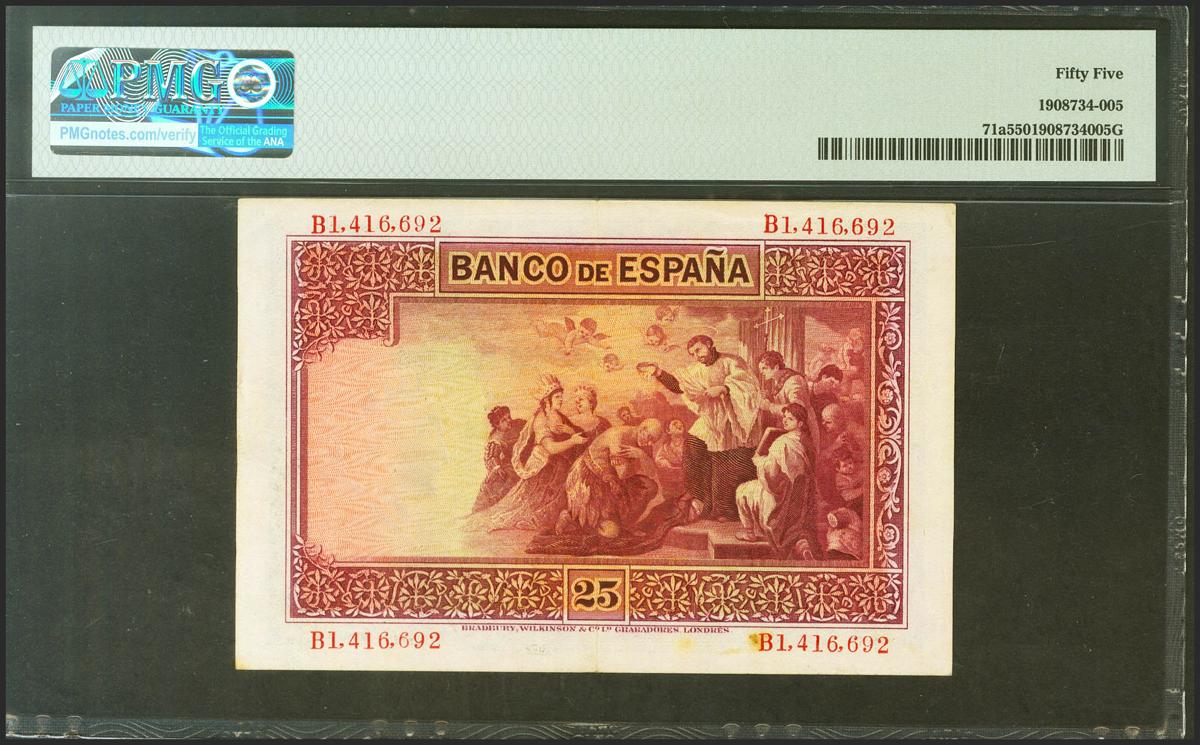25 Pesetas. 12 de Octubre de 1926. Serie B, última serie emitida. (Edifil 2021: 325a, Pick: 71a). Inusual en esta calidad. EBC+. Encapsulado PMG55.