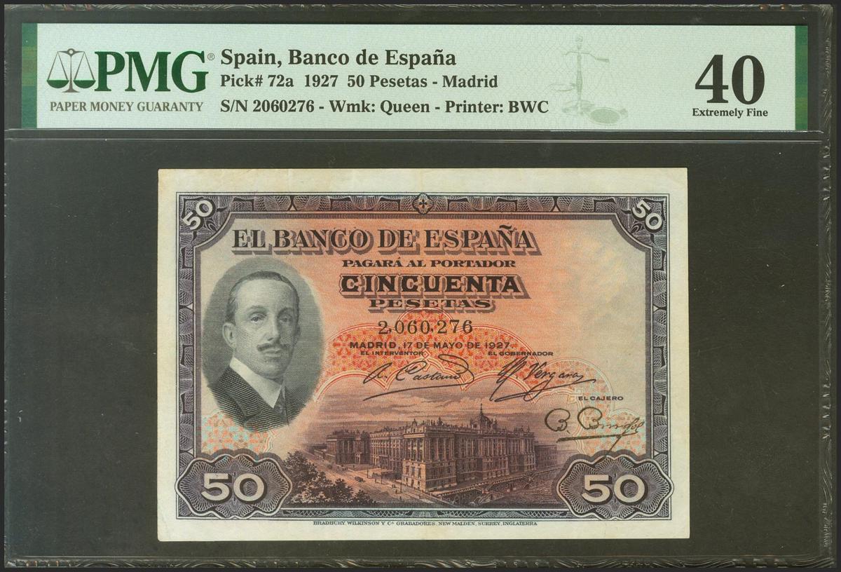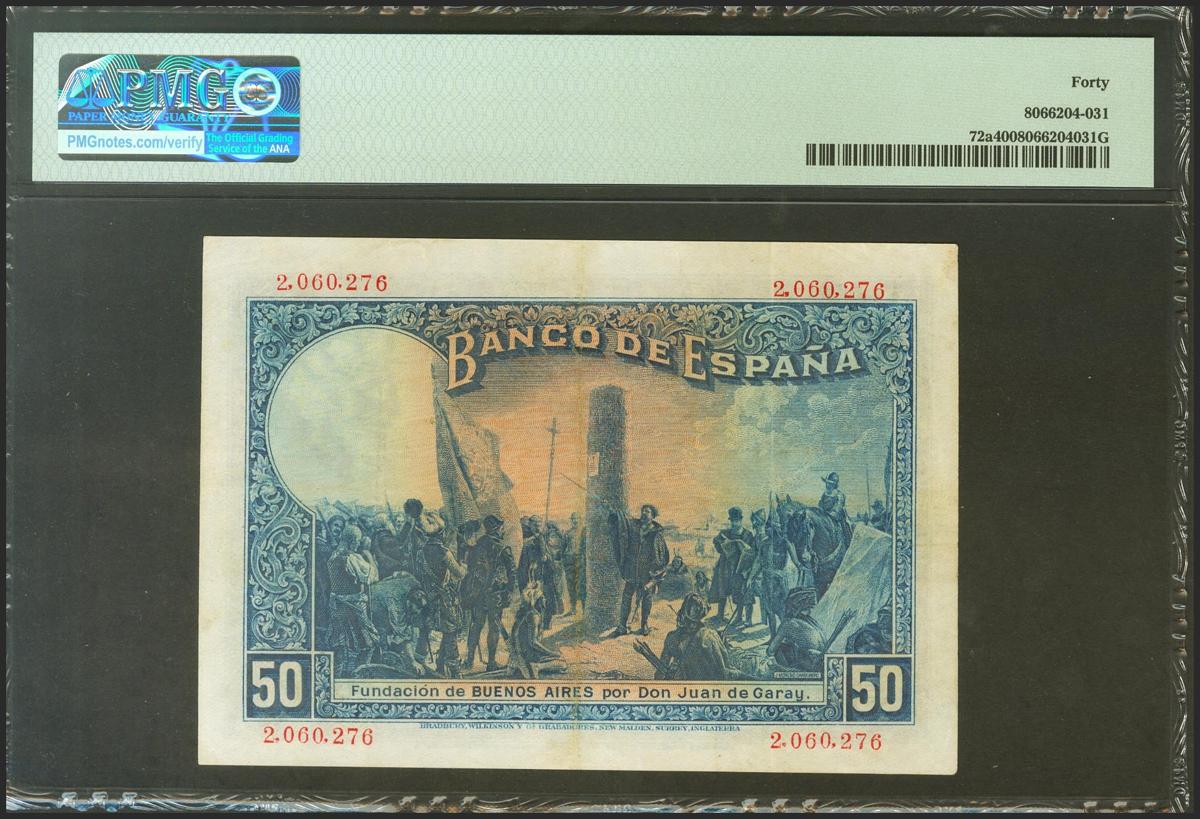 50 Pesetas. 17 de Mayo de 1927. Sin serie. (Edifil 2021: 326, Pick: 72a). EBC. Encapsulado PMG40.